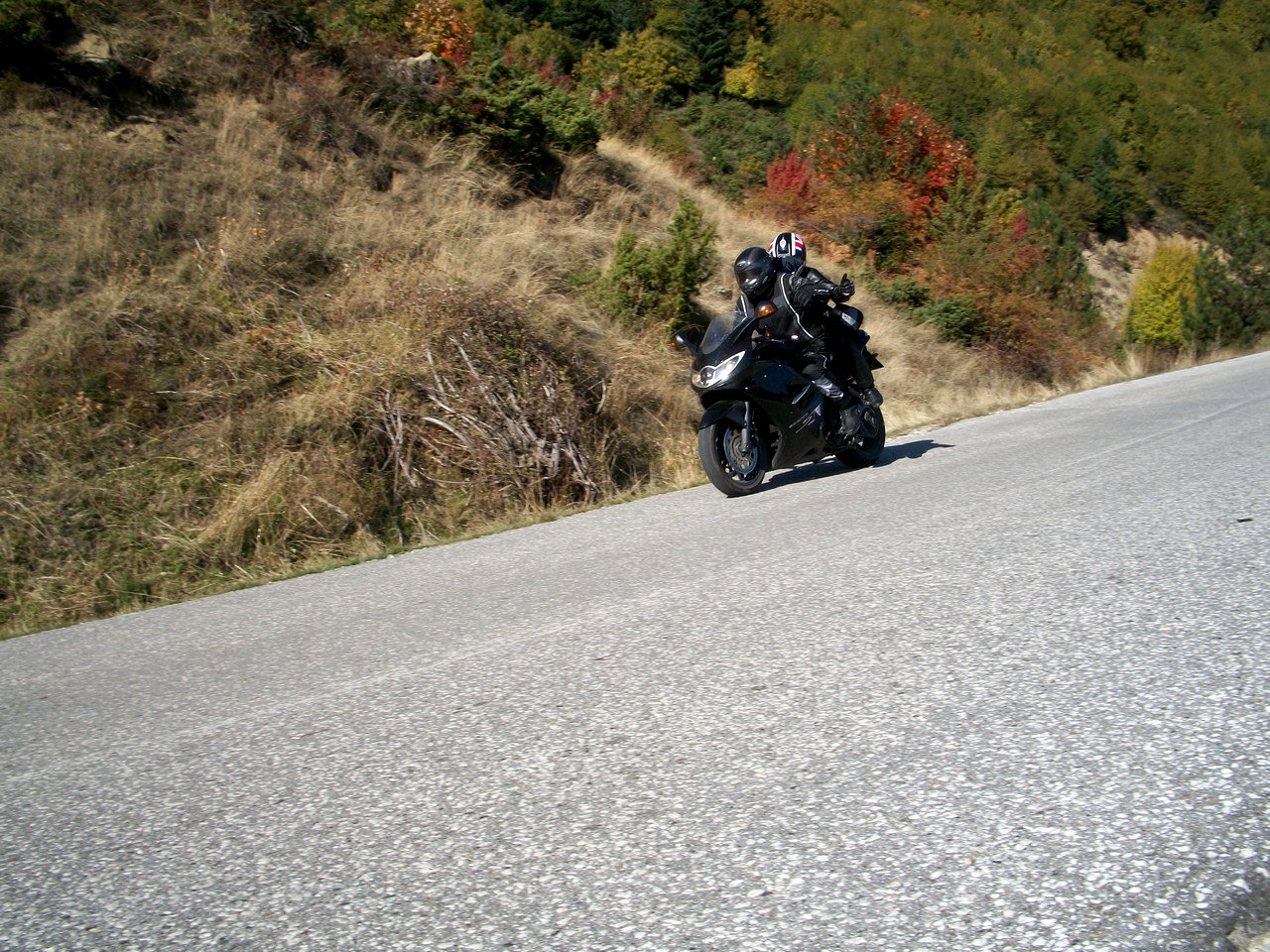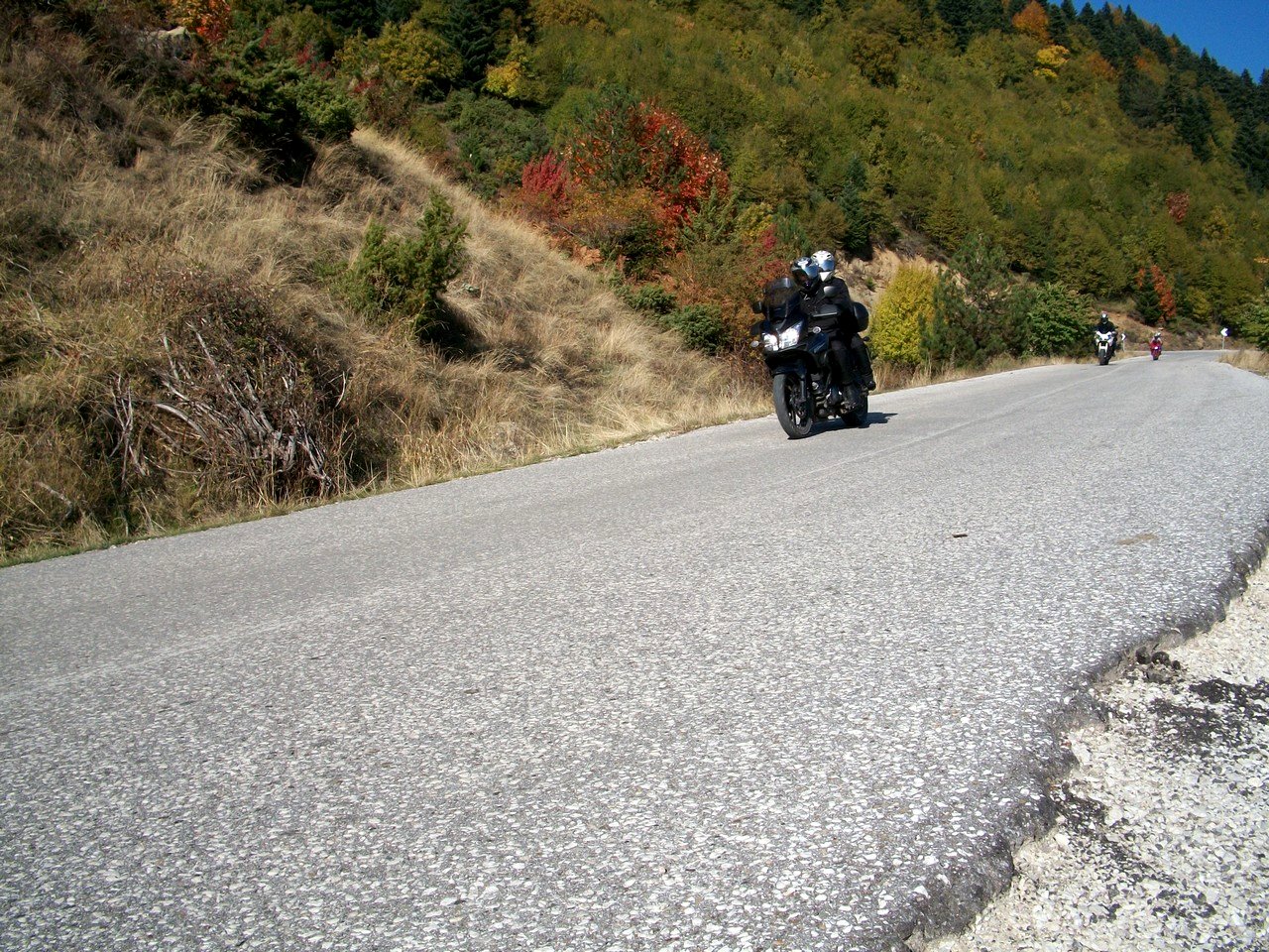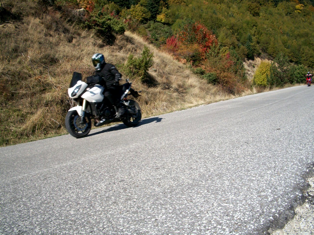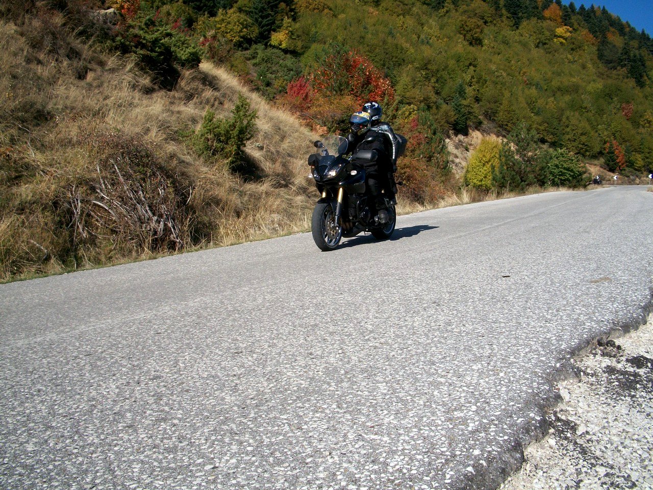 Ακολουθησαν 6-7 χιλιομετρα χωμα με χοντρο χαλικι, ευτυχως ολο καταβαση, για να περασουμε απ την αλλη μερια.. Φυσικα δε κωλοσε κανεις.. Και επειτα για αρκετα χιλιομετρα το καλυτερο κομματι της ημερας με φανταστηκα χρωματα, γρηγορες στροφουλες και πολυ καλη ασφαλτο!
